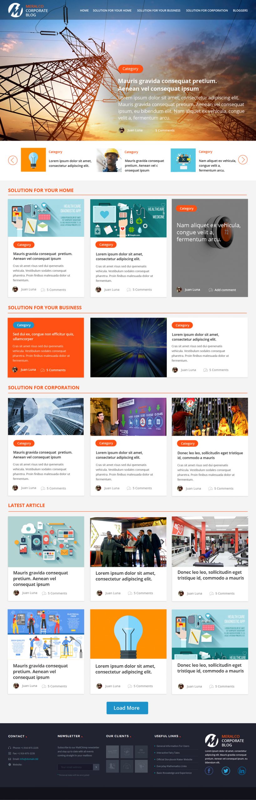 Create a UI for Meralco corporate blog with this specification we gather from the user and the stakeholders